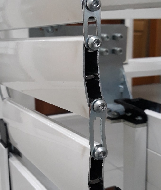 La versione Compact della Ibrida nasce con il preciso obiettivo di ridurre ulteriormente gli ingombri. Presenta una grado di anti effrazione di Classe 3. Per questo è stata progettata più snella a tal punto che il binario di scorrimento corrisponde a quello già esistente della normale tapparella. La compact Plus ha un interspazio massimo tra le fasce di cm. da 1 a 2. Anch’ essa motorizzata, è dotata di kit anti sollevamento in acciaio, rinforzo in acciaio all’ interno di ogni singola fascia, tondino in acciaio cementato anti taglio, guarnizione per la tenuta all’ acqua e al vento e serratura.